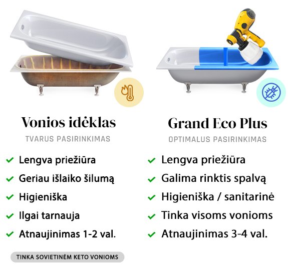 Rinkitės tarp dviejų inovatyvių vonios atnaujinimo būdų: ekonomiško ir greito turbinos metodo ar akrilinio įdėklo, kuris, nors šiek tiek brangesnis, tačiau užtikrina ne tik papildomą šilumos išlaikymą bei mažesnę mikrobų kaupimosi riziką ir yra lengvai prižiūrimas.